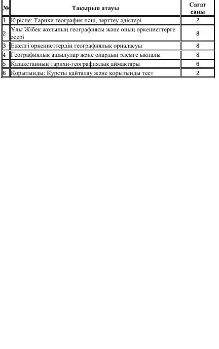Данный курс является междисциплинарным и находится на стыке истории и географии. Программа направлена на всестороннее изучение историко-географических особенностей Казахстана и мира. Учащиеся будут изучать исторические события с пространственной точки зрения, научатся работать с картографическими материалами и анализировать исторические документы и источники. Кроме того, курс способствует развитию критического мышления и помогает понять, как исторические процессы зависят от географических факторов.