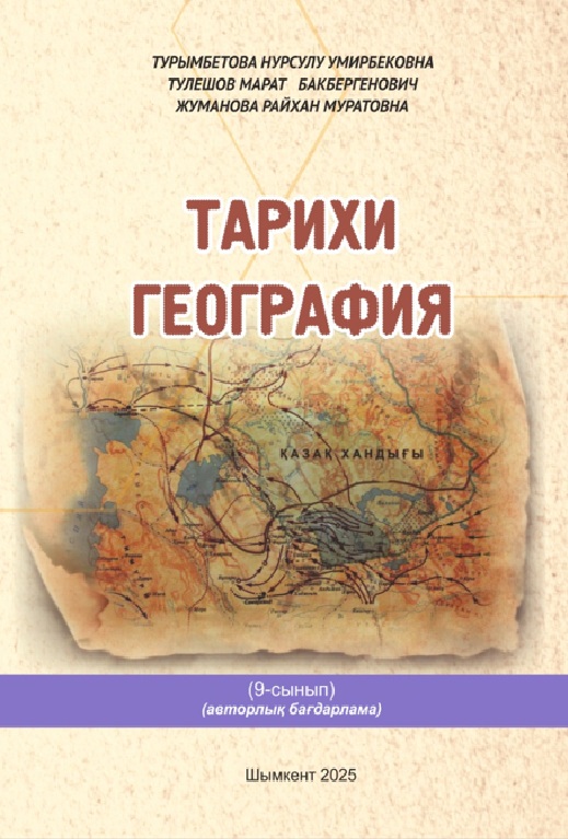 Тарихи география : 9-сынып оқушыларына арналған авторлық бағдарлама / құраст. Н.Турымбетова, М.Тулешов, Р.Жуманова. – Шымкент, 2025. – 70 б.